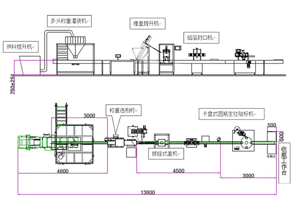 顆粒稱重灌裝封口貼標生產(chǎn)線方案設計